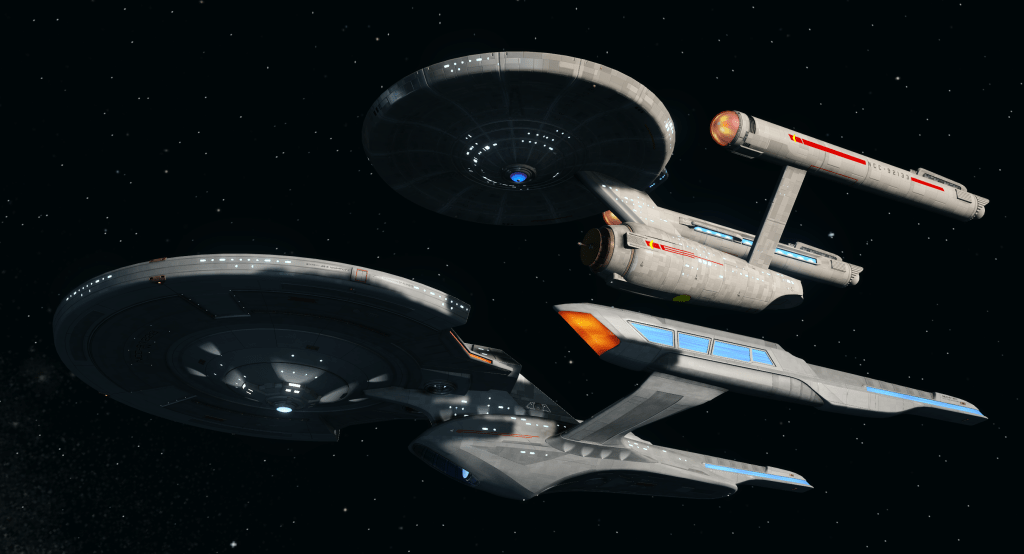 From this program, four classes would emerge: the 4-nacelled Sagan-class, the sturdy combat oriented Duderstadt-class, the graceful Excelsior II-class, and finally, the now-famous Constitution III-class. With construction of all four well under way at the San Francisco and Tycho fleet yards, we’ll be taking this opportunity to look at the inheritors of both the Excelsior and Constitution class legacies, starting today with the Constitution III, otherwise known amongst the fleet as the “Neo Constitution”.